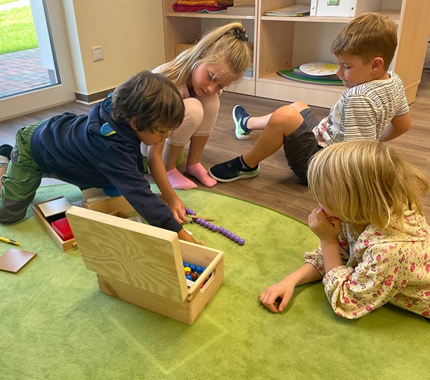 Dafür gestaltet unser Team eine anregungsreiche und fachlich aufbereitete Umgebung, welche den Ansprüchen der Montessori-Pädagogik gerecht wird.