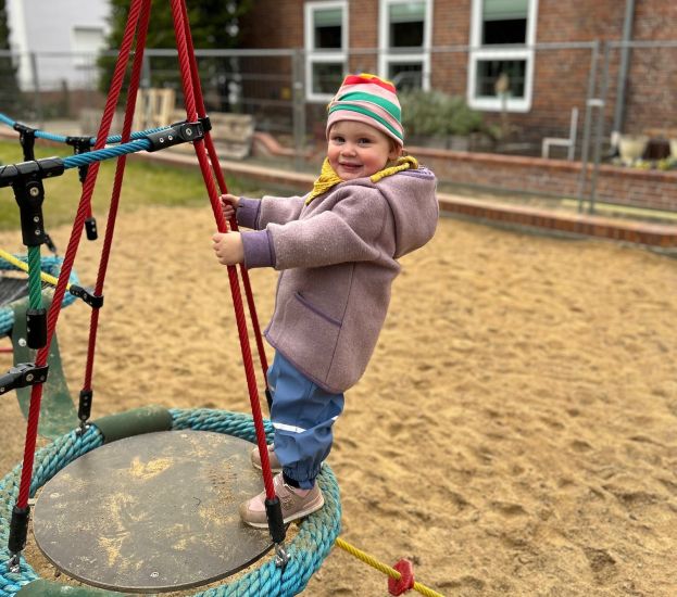 Unser weitläufig angelegter Kinderhaus-Garten mit seinen Spielgeräten, Spielhäuschen und der Sandlandschaft, eignet sich für reichlich Bewegung an frischer Luft. An sonnenreichen Tagen finden sich angenehme Schattenplätze zum Spielen, Gärtnern und Forschen in unserem Innenhof.