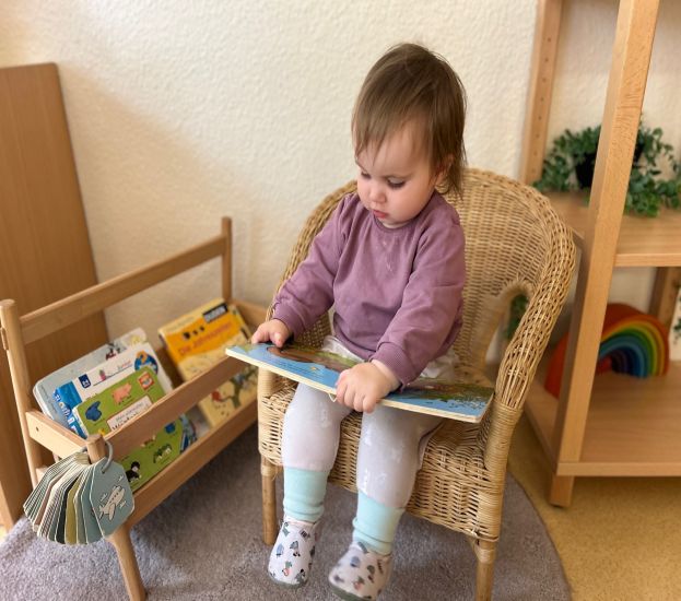 - täglicher Aufenthalt im Freien, angeleitete und freie Bewegungsstunden in der Turnhalle der Montessori-Schule und im hauseigenen Bewegungsraum